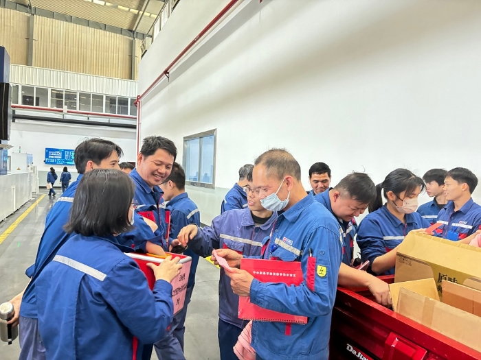 此外,在旺财28船电车间同步举行蛋糕发放及知识问答抽奖活动。一份份精美蛋糕发放到员工手中,让全体员工共享欢乐。有奖知识问答环节,员工们热情参与,回答正确的获得抽奖资格,抽到大奖的员工们脸上洋溢着幸福的笑容。